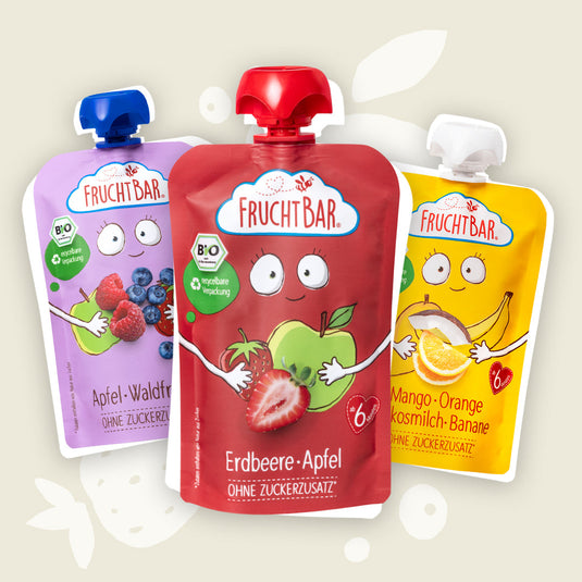 Unsere Bio Quetschies mit kindgerechter Rezeptur und ohne zugesetzten Zucker!