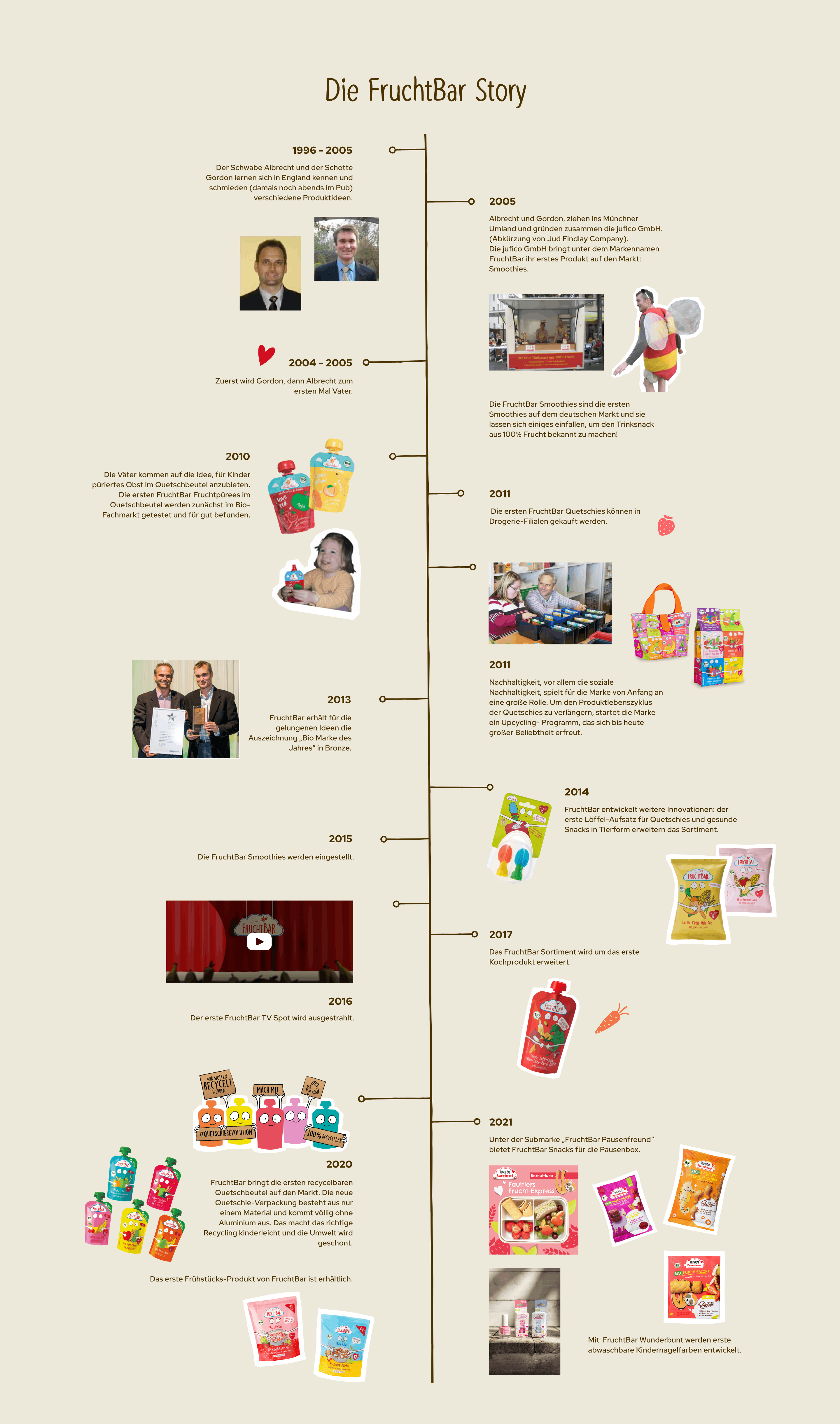 ...so sehen das Albrecht und Gordon, die Gründer von FruchtBar. Neben Spaß gehören für die beiden Papas auch ausreichend Zeit, gemeinsame Unternehmungen und gutes Essen zum Geheimrezept für die zufriedene Familie. Manchmal muss es allerdings schnell gehen und da bleibt nicht genug Zeit Früchte klein zu schnippeln oder Gemüse zu kochen und das ist dann auch völlig in Ordnung. Wir möchten euch unterstützen es euch leichter zu machen: unsere Snacks und Quetschies sind so gesund und praktisch wie möglich, können überall mit hingenommen werden. Und Ihr habt mehr Zeit für das Wichtigste: die Familie.
